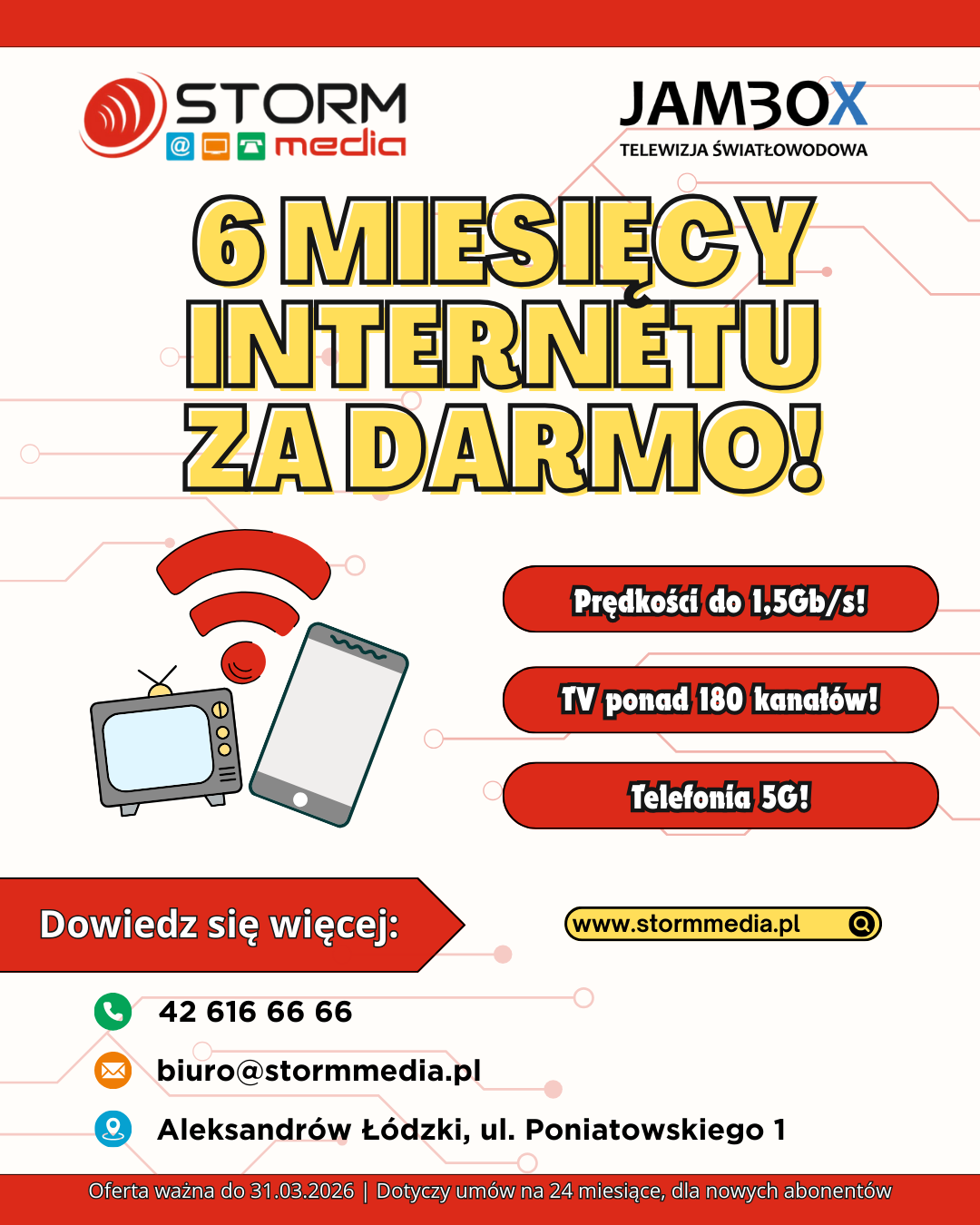 Promocja trwa tylko do 31 marca. To idealny moment, aby zmienić dostawcę na lepszego i cieszyć się szybkim łączem bez opłat przez pierwsze pół roku.